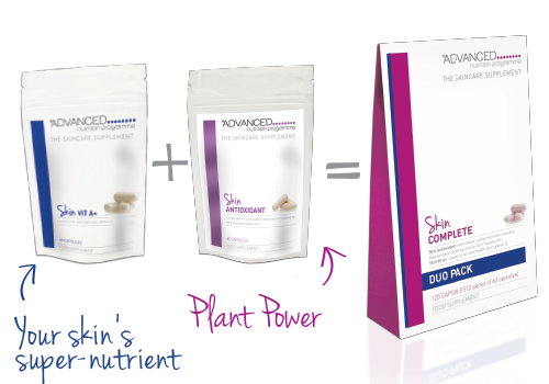 The Advanced Nutrition Programme has recently launched Skin Antioxidant, an innovative supplement containing seven super nutrients found in plants — lutein, curcumin, bilberry extract, beta-carotene, grapeseed extract, lycopene and green tea. Including Skin Antioxidant in your skin care routine will complement your skincare creams. Skin Antioxidant works in synergy with vitamin A and is available as a duo pack with Skin Vit A+ to repair and protect.
